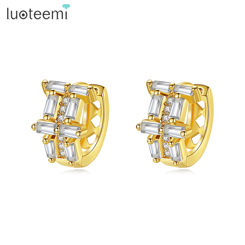 LUOTEEMI-pendientes geométricos cuadrados de circón para mujer, ajuste de barra de corte de princesa, aretes de Clip de aro grande, joyería