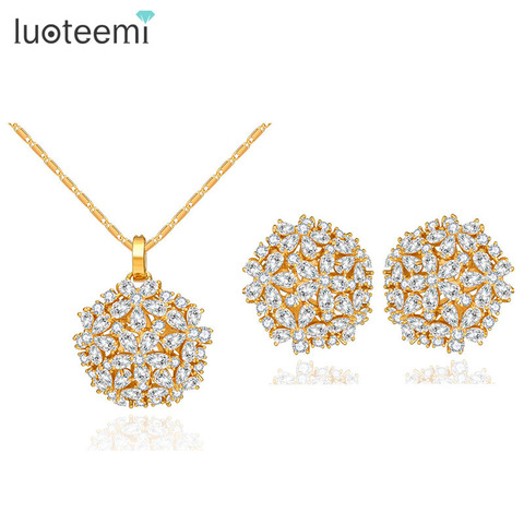 LUOTEEMI all'ingrosso nuovo 18K placcato oro rosa regalo di nozze moda matrimonio CZ collana orecchini Set di gioielli per le donne