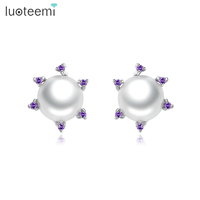 Серьги с жемчугом LUOTEEMI, новейший дизайн, из родия, белого золота, 3 А, циркон, латунные серьги-гвоздики с жемчугом