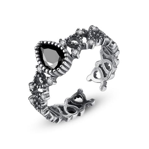 CZCITY แหวนเงินเปิดโล่ง925สำหรับผู้หญิง,เครื่องประดับสไตล์วินเทจสีเดียวสไตล์วินเทจ Anneaux สำหรับผู้หญิง